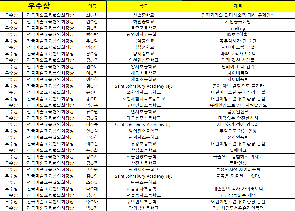 | [공지] 「제3회 전국학생문화경진대회」 결과발표 (미술교육협의회 부문) | |