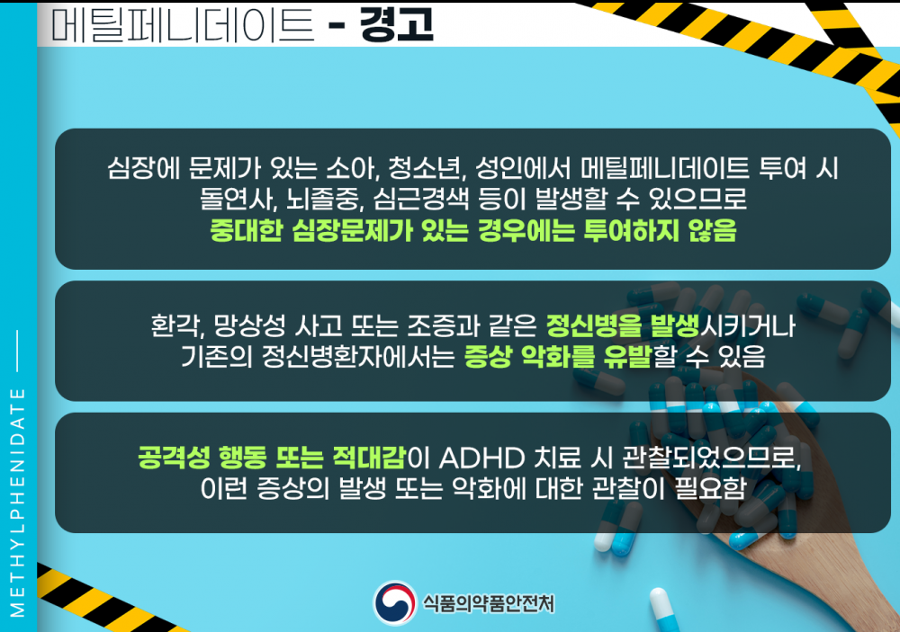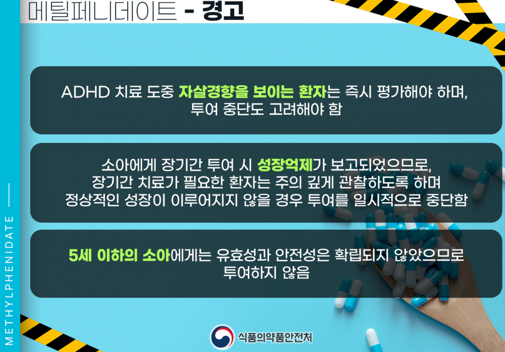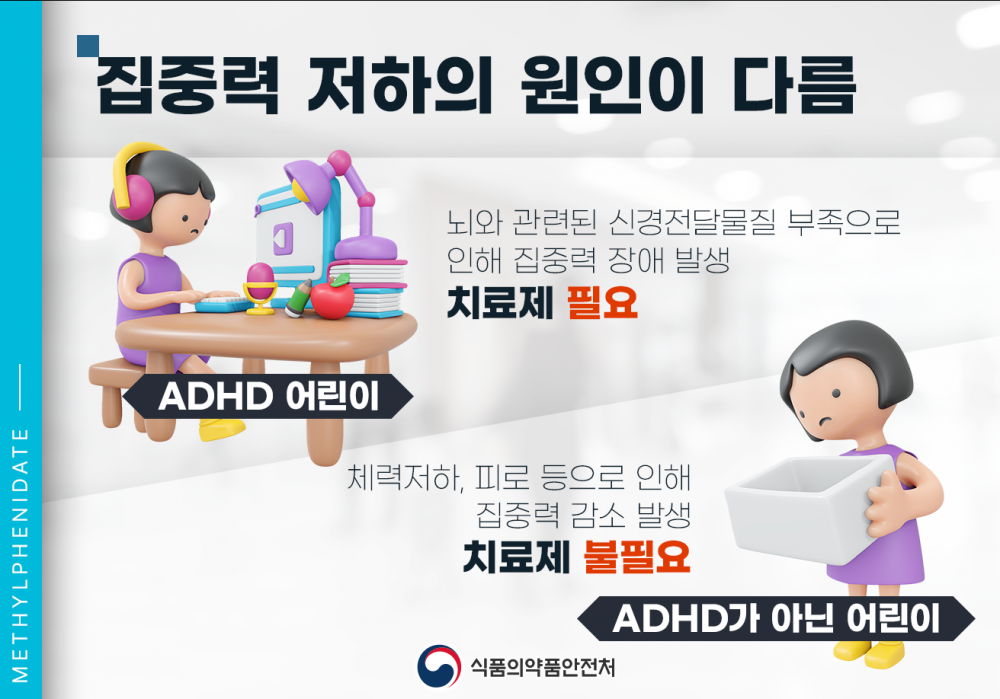 ○ 위와 관련하여 학생들이 집중력 향상 효과 등 잘못된 정보로 ADHD 치료제 오남용하는 것을 방지하고자 하오니 아래 내용에 많은 관심 부탁드립니다.