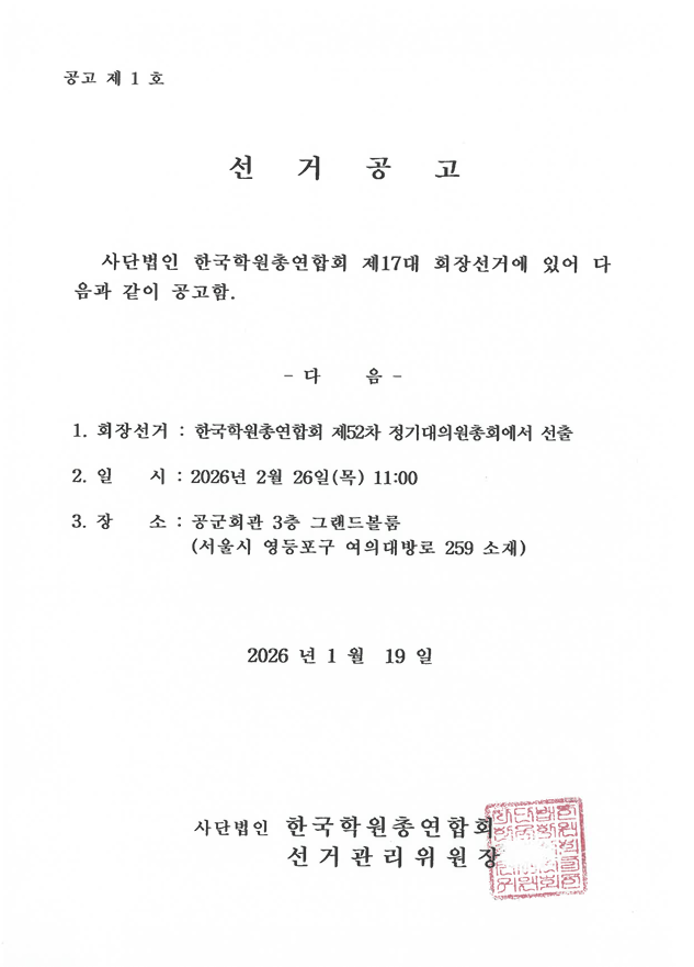 [공지]한국학원총연합회 제17대 회장 선거 공고