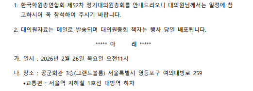 | [공지]제52차 정기대의원 총회 개최 안내문 | |