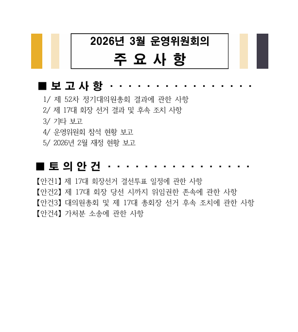 [공지] 2026년 3월 운영위원회의 주요사항 안내